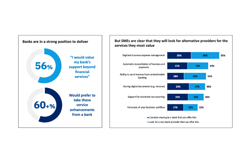According to Celent’s data, if banks fail to provide these value-added services, over 40% of SMEs would consider switching to another provider. In areas like expense management, that figure rises to 55%.
